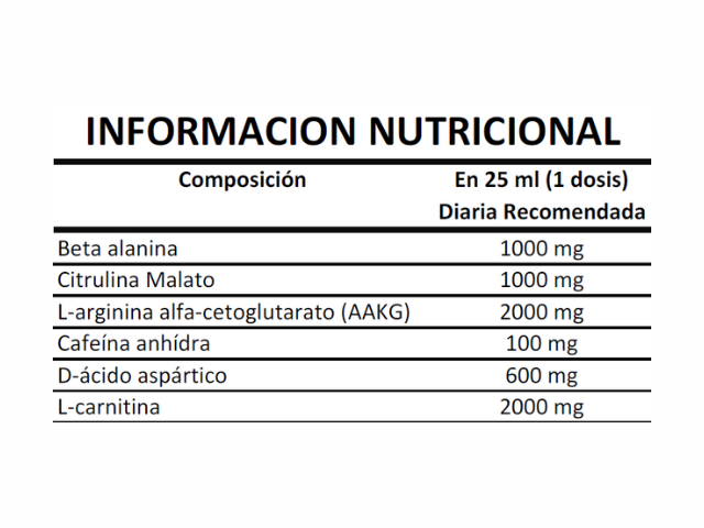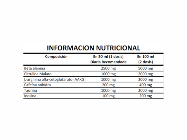 SABOR FRAMBUESA - (12 UNIDADES) - Pre-Entreno vial que incluye 2 tomas en la misma botella. 200 mg de cafeína. 2,5 g de Beta-Alanina + 1 g de citrulina malato + 1 g de Arginina (AAKG). 1 g de Taurina
