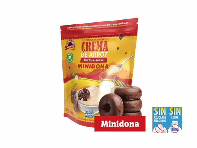 CREMA DE ARROZ MINIDONA (DONETES NEGROS) MAX PROTEIN. SIN AZÚCARES AÑADIDOS. SIN LECHE. APTA PARA VEGETARIANOS. MATERIA PRIMA DE CALIDAD
