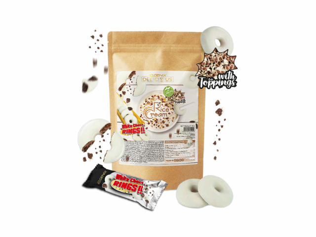 Crema arroz White Choco Rings (Donetes choco blanco) Gran digestibilidad, con Lactosa, con Stevia, con Gluten. Fuente de energía. Bajo en grasa.